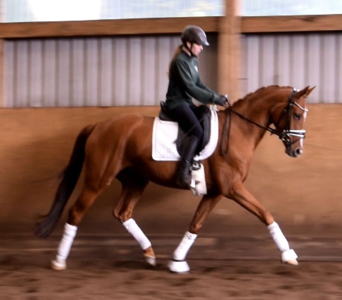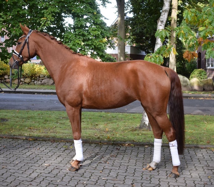 Diese Stute zaubert ihrem Reiter jeden Tag ein Lächeln ins Gesicht! Neben ihrer tollen Rittigkeit verfügt sie über ein aktives Hinterbein und drei sehr gute Grundgangarten. Springtime ist sehr leichtrittig, reagiert gut am Sitz un ist einfach in der Anlehnung zu reiten, durch diese Eigenschaften lässt er jeden Reiter gut aussehen. Sie ist schon gut ausgebildet und auf dem Weg zu Klasse -L-. Der nächste Turniersaison kann kommen! Sie hat einen lieben und aufmerksamen Charakter, ist verträglich in der Herde, dem Menschen gegenüber offen und super freundlich und verschmust, dabei sehr gut erzogen. Dadurch ist sie absolut unkompliziert im Handling, brav beim Schmied etc. Probereiten jederzeit nach Absprache möglich. Mehr Infos finden Sie auf unserer Homepage. Hof Heisterbusch Team.