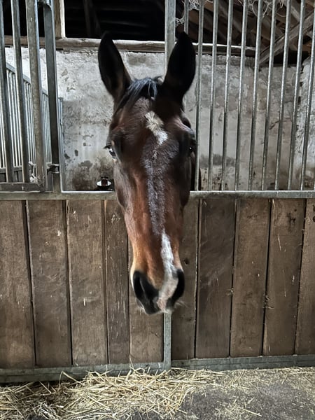 Cooper ist ein 14 Jähriger Wallach, auf Grund einer Sehenverletzung seit Aprill2024 aus dem Sport raus ist. Den Sommer durfte er auf der Weide verbringen, um der Verletzung Zeit zu geben. Er ist super sensibel und Im Umgang ehrlich und brav, auch beim Hufschmied und Tierarzt. Sehr gut kann ich ihm mir im Coaching, für Bodenarbeit/ Zirkuslektionen und ggf. freizeitmäßiges reiten vorstellen. Ausritte zu zweit / spazieren gehen alleine, kennt er. Bis auf die Sehnen ist er kerngesund und hat keine Unverträglichkeiten oder Allergien. Er ist aktuell nicht verladefrom. Ich wünsche mir eine schönes neues Zuhause für ihr! Im besten Fall mit einer neue Aufgabe, die ihn erfüllt.