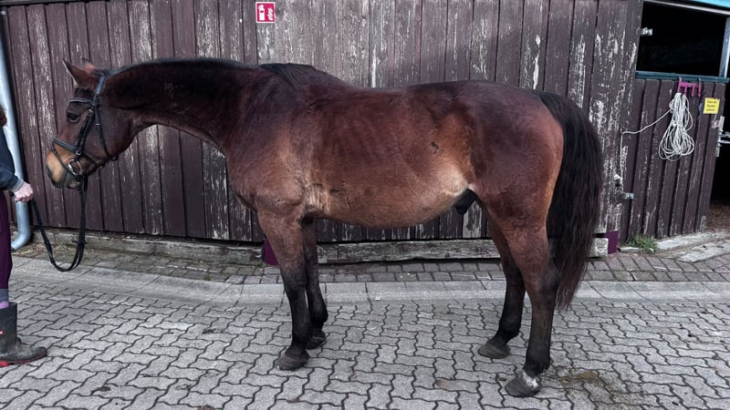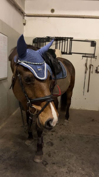 Nelson, Ist ein super lieber Wallach der viel Erfahrung mit sich bringt und ganz artig seinen Job macht. Er ist leicht an den Zügel zu reiten, steht gut an den Hilfen und springt sehr gerne. Er gehört aber eher zur gediegenen Sorte und lässt sich ungern aus der Ruhe bringen. Er springt sehr zuverlässig und macht super fliegende Wechsel von alleine. Er geht sehr gerne ins Gelände und ist da auch motiviert unterwegs. Er kennt Ausbinder und geht sowohl mit einem Dressursattel als auch Springsattel sehr gut. Ein super Pferd, um in den Sport einzusteigen bzw. auch ein gutes Wiedereinsteiger Pferd. Er lässt sich auch ohne Sattel reiten und Longenunterricht kennt er auch. Er hat letztes Jahr einige Turniere mit unseren Reitschülern bestritten und auch einige jugendliche durchs Abzeichen getragen. Er ist super fit und war bei uns nie lahm. Vorne braucht er 2 Eisen. Früher war er auf dem Turnier bis L springen platziert. Schmiede- und Verladefromm. Weitere Vidoes auf Anfrage
