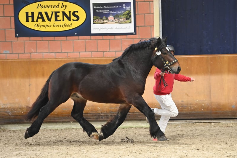 For sale is a stunning Rhinish-German Cold Blood stallion, born in 2023. This noble dark brown colt impresses with his strong yet elegant appearance. The young stallion will be suitable for both driving and riding in the future and already convinces with his excellent temperament. If you are interested or have any further questions, please feel free to contact me. We would be happy to arrange a viewing appointment.