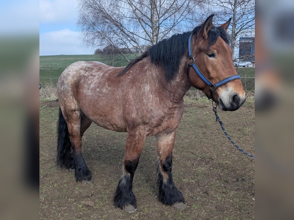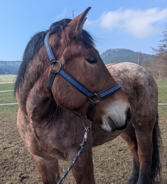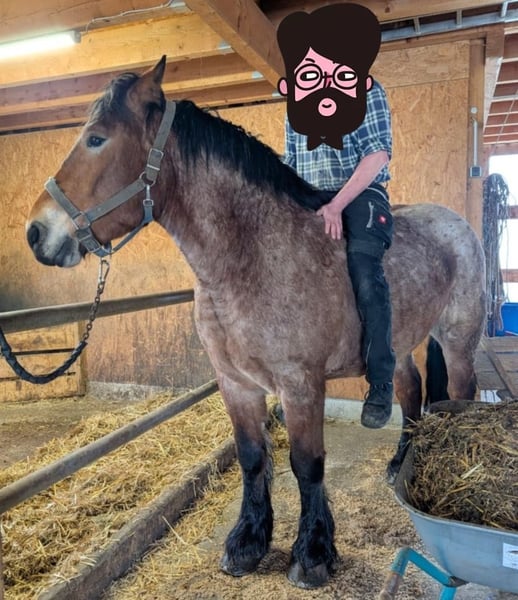 Umständehalber verkaufen wir unseren rheinisch-deutschen Kaltblut Wallach Oskar. Zur Zeit bilden wir Oskar als Fahr- und Arbeitspferd aus, dabei stellt er sich gut an. Bestimmt würde er sich auch als Reitpferd gut machen. Oskar ist 5 Jahre alt, hat ein Stockmaß von ca 170 cm und wiegt z. Zt. ca 800 kg. Er hat ein gutes Fundament, gesunde harte und gleichmäßig gewachsene Hufe. Oskar hat Papiere und Abstammungsnachweis. Er ist gelehrig und aufmerksam, verspielt, manchmal noch etwas schreckhaft. Oskar bleibt alleine im Stall und geht alleine von der Herde, er ist komplett beschlagen, (bisher kalt und ohne den Einsatz des Winkelschleifers). Oskar ist eher rangniedrig, nicht aufdringlich und doch den Menschen zugewandt. Er lässt sich problemlos verladen und fährt ohne Stress mit dem Anhänger. Wir geben Oskar nur in gute Hände, einen pferdegerechten Platz, möglichst mit Kaltblut Erfahrung. Bitte überlegt euch vor Kontaktaufnahme, ob ihr genügend Zeit, Lust und Erfahrung habt, euch mit einem jungen Pferd zu beschäftigen. Weitere Informationen findet ihr auch auf insta bzw. Facebook unter rosszeit oder unter rosszeit.de Für Interessenten mit einem konkreten "Oskarplan" stehe ich auch gerne telefonisch unter 0173 49 34 850 zur Verfügung. jo von rosszeit.de