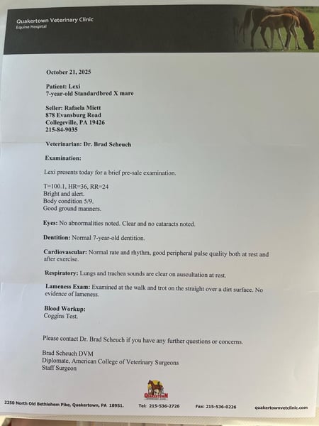 "AVAILABLE ON ONLINE HORSE AUCTION AT www DOT PlatinumEquineAuction DOT com BIDDING OPEN NOW thru SUNDAY | FEBRUARY 15TH! *Final price will be determined on auction site* CONSIGNOR CONTACT INFO: Rafaela Miett 215-840-9035 LOCATION: Collegeville, PA ✨🐴 Meet Lexi – Your Next Trail Partner! 🐴✨ Looking for a confident, sure‑footed trail horse. Meet Lexi, a 7‑year‑old Rocky Mountain /Standardbred Bay mare (barely under 14.2H) with a calm, agreeable personality. UTD on vaccines & farrier. Natural Horsemanship Trained: ✅ Walk- Trot-Canter ✅ Sound, healthy, great feet & barefoot, and easy keeper ✅ Ridden by beginners & experienced riders ✅ Neck reins, side passes, ground ties, stops off the seat ✅ Traffic‑safe & desensitized to vehicles, wildlife, gunfire, fireworks, and more ✅ Crosses rivers, creeks, fallen trees, and steep hills with ease ✅ Confident, not buddy or barn sour ✅ Rides out alone, leads or follows in a group, confident to breakoff alone ✅ Stands for farrier, vet, teeth float ✅ Trailers & travels very well ✅ Voice & leg commands ✅ Know her groundwork, has a great mind! Lexi is the first to greet you at the gate, loads easily, and thrives on connection. She’s ready for a loving, permanent home with an intermediate rider due to her age. Lexi is your next loyal partner! 📞 Contact Rafaela at 215‑840‑9035 to meet Lexi today!