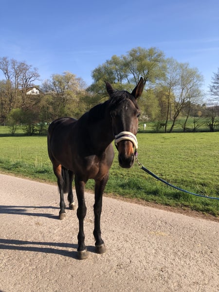 Guten Tag, Schweren Herzens muss ich leider meine im Oktober letztes Jahres eingerittene Traberstute Nicole Scott verkaufen. Sie hat eine erfolgreiche Traberkarriere hinter sich. Ich habe sie selber eingeritten und ihr das Springen beigebracht. Sie ist vor 3 Wochen mit mir das erste Punkte A gesprungen und hat das meisterhaft gemacht. Ausgeritten bin ich mit ihr alleine auch schön öfters, auch über 1,5 Stunden war ich alleine unterwegs. Dabei ist sie auch schon über kleine Baumstämme gesprungen. Sie ist sehr lernfähig und wirklich sehr lieb im Umgang. Der Hufschmied kann sie alleine machen und beim Tierarzt und verladen ist sie auch sehr lieb. Was sie auch zu einem verlässlichen Freizeitpartner macht. Das Reiten mit ihr macht einfach nur Spaß. Gegenüber anderen Pferden ist sie Platz 1 in der Rangordnung. Ich wünsche mir ein liebes Zuhause für sie. Bei Interesse würde ich mich freuen, wenn Sie Kontakt zu mir aufnehmen. Meine Handynummer ist: 01755704505 Vielen Dank. Beste Grüße