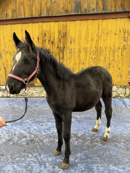 Sprzedam klaczkę (ur. Kwiecień 2025) z bardzo dobrego pochodzenia. Matka: Fallada Ojciec: Bonus Klacz zdrowa, zadbana, spokojna i chętna do współpracy. Przyzwyczajona do kontaktu z człowiekiem. Zapowiada się na naprawdę obiecującą klacz – ma ładną budowę, dobry ruch i świetny charakter. Idealna na przyszłość do jazdy lub hodowli. Możliwość obejrzenia na miejscu. Więcej informacji udzielę telefonicznie lub w wiadomości.