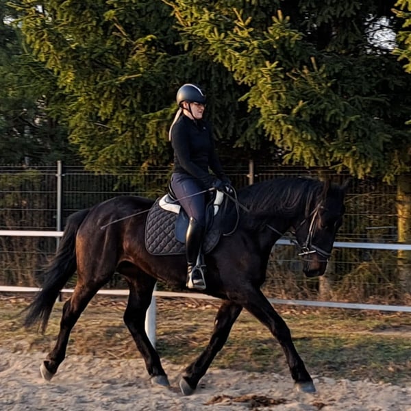 Afrodyta- Schlesier Stute mit Vollabstammung und Hauptzuchtbuch 4 j.a. 1,68m. Sie ist eine wunderschöne schlesische Stute, geboren im Jahr 2022. Mit ihrem eleganten dunkeler-Fell und einem Stockmaß von 168 cm ist sie nicht nur ein Blickfang, sondern auch ein nettes Dressurpferd.Sie geht auch in der Kutsche- ist 2-spännig gefahren. Diese Stute zeichnet sich durch ihre freundliche und aufgeschlossene Art aus. Sie ist gut erzogen, brav im Umgang, kennt Hunde und Katzen. Ihre Bewegungen sind geschmeidig und ausdrucksstark. Tolles Freizeitpferd. Die Stute ist gesund, barhuf und Herdenverträglich. Bei Interesse oder weiteren Fragen stehe ich gerne zur Verfügung. Besichtigungen und Probereiten sind nach Absprache möglich. Standort nähe Görlitz.