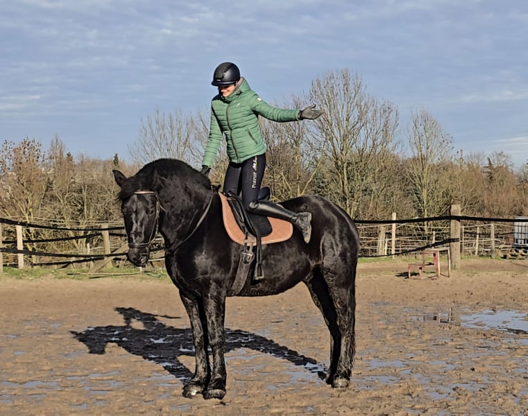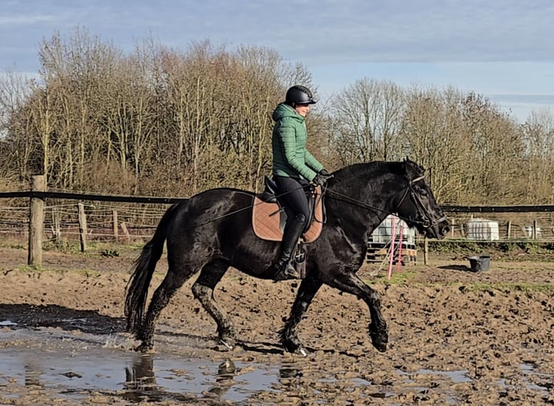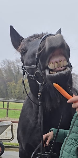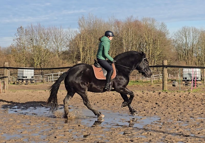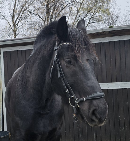 Bitte vereinbaren Sie einen Termin unter : +4915561855942 . Gerne auch per WhatsApp. Standort 45472 Mülheim Balou der Bär ist eine 10 j. 1.65 cm großer Schlesier wallach Balou ist ein echter Clown. Für eine Möhre tut er alles. Er liebt die Aufmerksamkeit und ist dem Menschen gegenüber sehr offen und herzig. Er lässt sich brav putzen und fertig machen und ist einfach ein Traum in schwarz. Unterm Sattel ist er eher gemütlich unterwegs ohne mega triebig zu sein. Eher ein ruhiger Geselle. Er geht brav alle 3 GGA und ist dabei sehr Leichtfüßig und gut zu sitzen. Er ist ein wahrer Freizeutkumpel der mit einem durch Dick und Dünn geht. Er würde für seinen Menschen auch durchs Feuer gehen. Er ist ebenfalls auch gefahren, somit ist er auch nicht umweltorientiert oder schreckhaft. Die Halle hat er jetzt bei uns kennengelernt. Macht er brav aber man merkt das ihm der Platz oder das Gelände deutlich mehr Spaß macht. Bisher ist er immer gesund gewesen und ist aktuell noch 4 x beschlagen. Nach und nach kann man dies aber reduzieren. Er könnte auch gut ohne Eisen klar kommen. Die Zähne und Hufe sind frisch gemacht. Bisher ist er gesund gewesen, entwurmt, Zähne frisch gemacht und beim Schmied war er auch und macht das hervorragend. Aktuelle videos sind vorhanden und können nach dem erstkontakt gerne versendet werden. Eine AKU kann im Auftrag des Käufers veranlasst werden. Um den Pferdetourismus zu bremsen, berechnen wir für die Präsentation und Prüfung des Pferdes 30 €. Davon profitieren natürlich auch die Pferde in Form von Osteopathie, Tierärtze, Chiropraktikern, Massagen, Solarium, Müsli, Karotten und so weiter