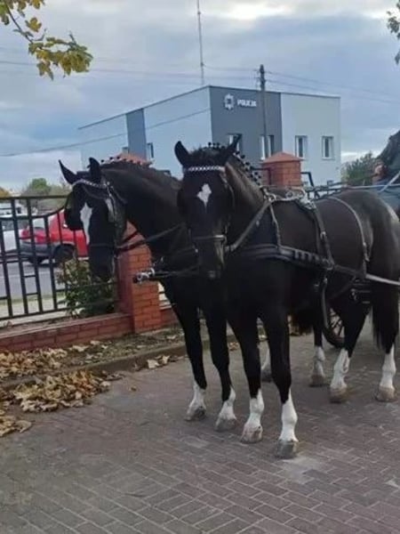 Zum Verkauf steht ein sehr schönes Passgespann mit zwei 3-jährigen Schlesier Wallachen. Beide sind verkehrssicher in der Kutsche und dem Alter nach entsprechend ausgebildet. Preis bitte auf Anfrage.