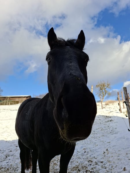 Hallo Interessenten, wir bieten hier unseren Bosman an. Diesen haben wir im Jahr 2021 in unsere Familie geholt als Freizeitpferd. Durch Tragische Änderung der Lebensumstände ist uns zwar die Versorgung möglich, aber nicht mehr die benötigte Reiterliche Aufmerksamkeit um ihn zu fordern und zu fördern wie es in seim Alter nun nötig wäre. Bosman ist ein Freund fürs Leben. Er ist verschmust, eine liebe Seele und sucht einfach jemanden der für Ihn nun die nötige Aufmerksamkeit aufbringen kann. Bosman ist 1,67 m im Stockmaß. Er ist 2018 geboren. Und ein schlesisches Warmblut. Er wurde von uns selbst eingeritten. War aber nie in einem professionellen Beritt. Bosman läuft schon immer Barhuf oder mit Hufschuhen. Kennt alle Stallformen wie Offenstall, Boxenhaltung gemischte Herden und getrennte Herden. Er eignet sich durchaus als Anfänger Pferd aber er weiß auch sich durchzusetzen daher braucht er eine klare Führung. Bosman ist sicher im Gelände und unerschrocken gegenüber anderen Tieren und Pferden denen man beim Ausritt in der Natur begegnet. Er kennt sowohl Reiter Rallyes als auch den Reitplatz, zudem ist er Verladefrom. Ausreiten mit fremden Pferden ist auch überhaupt kein Problem hier benimmt er sich und ist einfach Zucker ! Aufgrund der Lebensumstände ist 2025 Bosman leider zu kurz gekommen. Hier hat er einige Pfunde zugenommen und ist somit etwas außer Form geraten. Durch diese Umstände zeigte er das erste Mal eine Auffälligkeit Hinsicht Schubbern an der Mähne. (siehe Bilder) Die Jahre zuvor ist dies nicht aufgetreten. Ansonsten war sein Gesundheitszustand immer einwandfrei. Bosman besitzt alles was man sich wünscht. Zusätzlich besitzt er eine komplette Ausrüstung wie z.b. Hochwertiger Wanderreitsattel von Beuber, Hufschuhe, Decken, Schabracken und jegliches Zubehör in alles Ausführungen. Wir wünschen uns für Bosman ein gutes und liebevolles Zuhause zu finden bei dem er die Aufmerksamkeit bekommt die ihm nun Zusteht. Weitere Infos können gerne telefonisch angefragt werden. Reitplatz für Probereiten vorhanden. Bosman steht in 64720 Michelstadt - Weiten Gesäß