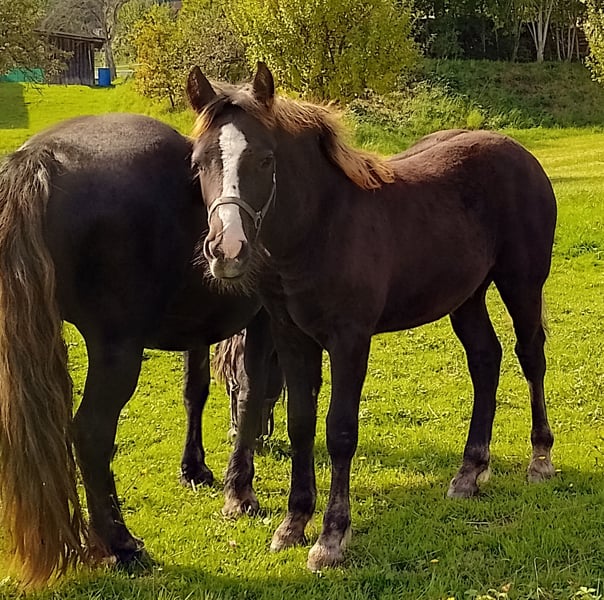 Bubi ist im Herdenverband und Robusthaltung aufgewachsen, er steht täglich mit der Herde auf der Koppel und kennt nachts die Box. Die Begegnungen mit landwirtschaflichen Maschienen und Tieren kennt er und begegnet diesem sehr offen und neugierig. Kinder, Hunde , Kühe , Fahrzeuge sind ihm vertraut. Equidenpaß vorhanden. Gerne beantworte ich weitere Fragen. Vater -Elite Hengst Vento vom HAUPT-und LANDGESTÜT MARBACH. Geschätztes Stochmaß ca 150cm, moderner sportlicher Typ.