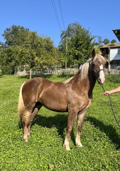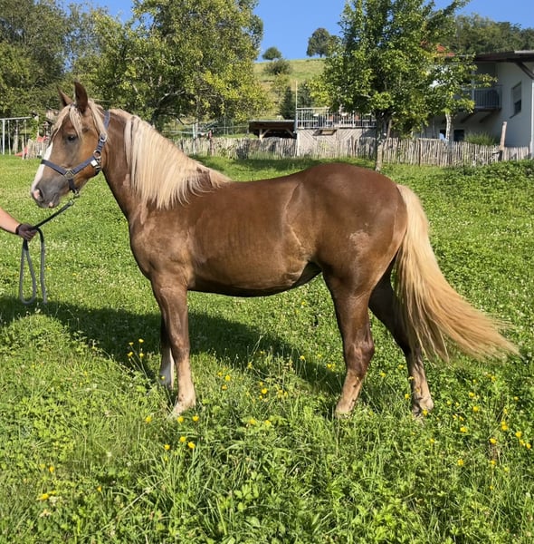 Wir verkaufen unsere großrahmige Jährlingsstute von E.H. Rubiniero. Sie ist sehr umgänglich und freundlich. Kennt den Hufschmied und das Fohlen- ABC
