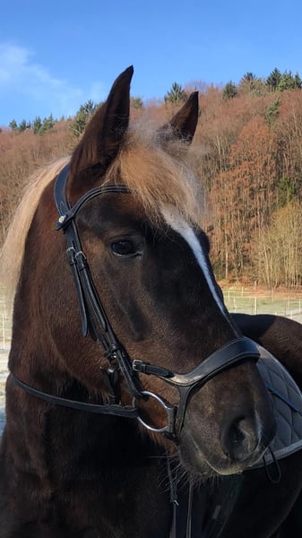 Zum Verkauf steht eine sehr typvolle, freundliche und fleißige Schwarzwälder Fuchs Stute, geboren im April 2017, aus tollen Linien gezogen und einem Stockmaß von ca. 1,52 m. Die Stute ist geritten und gefahren. Sie geht alleine und in der Gruppe ins Gelände und ist dabei stets klar im Kopf. Dennoch ist Sie kein Anfängerpferd, sie braucht einen erfahrenen Reiter, der auch Ihr in manch unsicheren Momenten halt gibt. Wer Ihr dies bieten kann, mit dem geht Sie durchs Feuer. Die Stute hat „Go“, ist also keine Schlaftablette, Sie geht fleißig voran ist dabei aber stets händelbar und klar im Kopf. Sie ist durch Ihre Abstammung auch als Zuchtstute bestens geeignet, Bilder der bisherigen Fohlen können gerne auf Nachfrage gezeigt werden. Die Stute befindet ist im professionellen Beritt, dort findet ein erheblicher Anteil des Trainings im Gelände statt. Ganz viel bergauf und bergab Training. Gelassen übers Stoppelfeld, Landwirtschaftliche Maschinen, Alpakas, Laubbläser, kleine Sprünge, mit Ihr Schlitten fahren, alles kein Problem. Wer Videos vom Training sehen möchte, bitte einfach melden. Sie kann aber auch jederzeit vor Ort im Training besucht werden. Wer einen fleißigen Freizeitpartner sucht ist hier goldrichtig. Eine sehr liebevolle, aufmerksame Stute, die mit dem passenden Menschen durchs Feuer geht. Einsatzbereiche: Fahren, Freizeit, Dressur, Gelände und Wanderritte. Der Preis steigt mit fortschreitender Ausbildung weiter an. Bei Interesse freuen wir uns über eine persönliche Nachricht.