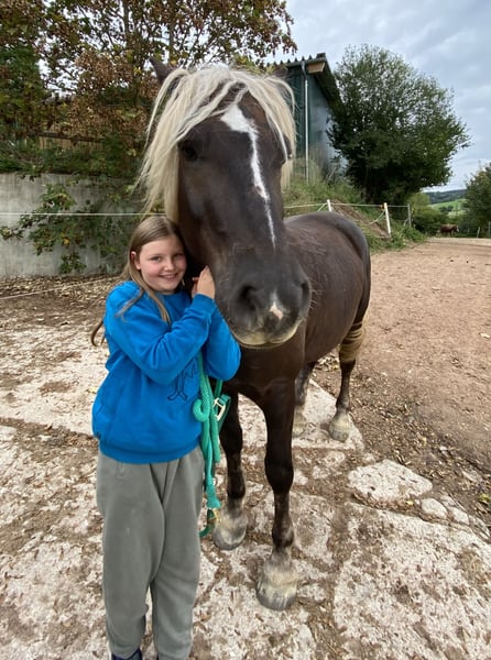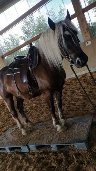 In vendita un bel castrone di colore castano scuro, molto tipico, nato ad aprile 2016. È cresciuto nei primi due anni di vita presso il principale Ippodromo di Marbach. Da puledro, premiato con la medaglia d'oro. Con un’altezza al garrese di circa 160 cm, è perfetto per i cavalieri da tempo libero. È un compagno amichevole e affidabile. Falko è addestrato nel western, ma recentemente è stato montato solo raramente, poiché il tempo a disposizione è limitato. Ama molto andare in passeggiata in campagna, spesso da solo. Per lui non è un problema. È molto compatibile con gli altri cavalli nel branco. Si colloca a metà della gerarchia. Ben educato, si fa pulire i piedi correttamente e adora essere coccolato. Si distingue per il suo carattere amichevole e la voglia di imparare cose nuove. Il castrone è in buona salute, senza ferrature, e si presenta con i piedi nudi. È adatto sia a cavalieri esperti che a principianti che cercano un partner affidabile. È un cavallo molto dolce, molto legato alle persone, assolutamente coraggioso, e non si spaventa facilmente. A causa della sua forza, è adatto anche a cavalieri un po’ più pesanti. È stato montato, ma non è stato lavorato regolarmente, quindi potrebbe essere ottimo anche per questo scopo. Non è in vendita d’urgenza – viene affidato solo a persone di assoluta fiducia e in stalla all’aperto. Per ulteriori informazioni o interessati, sono a disposizione. Visite e prove di monta sono possibili su appuntamento.