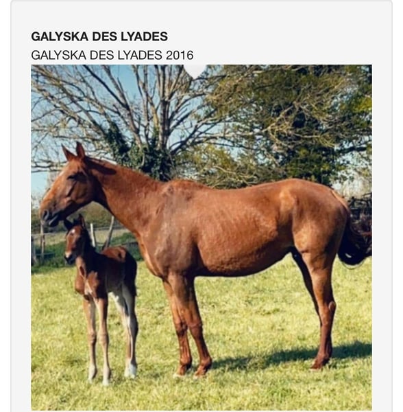 A vendre Playboy de Lessert Male de l’année SF, du chic, du déplacement, de la taille. Gentil et bien manipulé. Par Galyska des Lyades SFO, par MR FLY DE LANDETTE, Étalon, 𝗦𝗙𝗢, ISO 135, par Galoubet A et Sunfly (AA). Accidentée à 2 ans, Galyska n’a pu être valorisée mais montrait néanmoins de beaux moyens. Et Levistan Hann par Levisto, Production déja confirmée, avec notamment Comic Star ISO152.