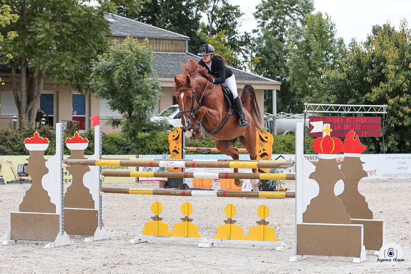 Irio de la Bresse (par Untouchable 27/Ogrion des Champs) Iri Entier selle français de 8 ans très gentil, toise environ 1m65. Classe 120/125 avec une amateur et à commencé les 130 l’année dernière ! (Moyen 140 minimum) Top cheval, gentil et bonne tête, un peu tardif à finir de former pour sauter haut. Force ++ Visite véto ✅ Vaccins à jour ✅ Pratique : tonte, extérieur (seul ou accompagné même d’une jument), transport… 📍Visible aux Ecuries Fontanelle dans le Jura Vidéos/Prix et + d'informations, veuillez me contacter en mp, @lanajaouenmetayer ou au 06 82 42 91 71