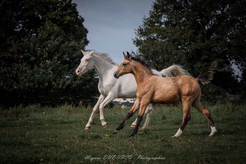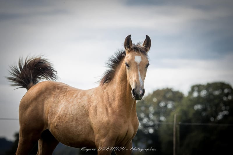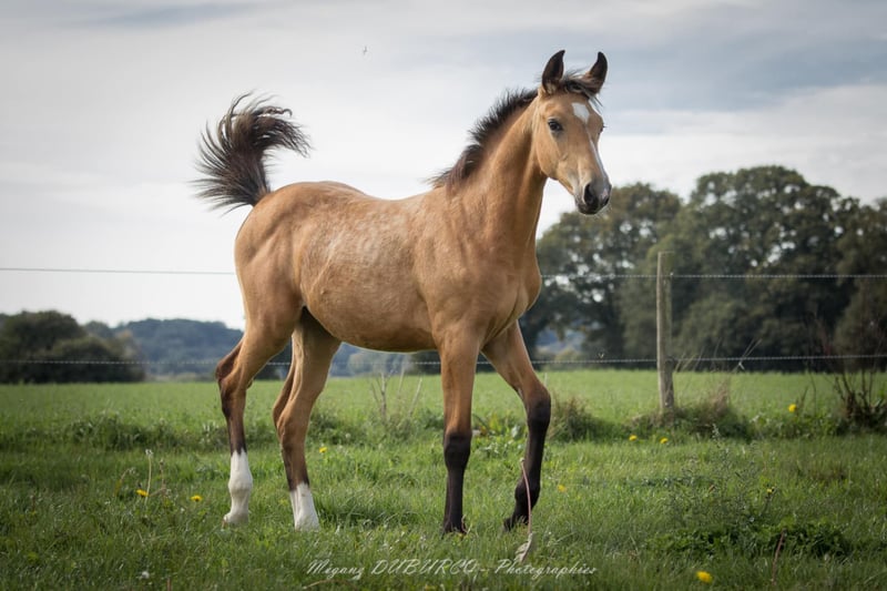 🎀 Pin’up de Quilvala 🎀 Pouliche Selle Français Isabelle née le 13 mai issu du croisement entre : 🧬 Controe ( Contender x Aloube z) et Crème Chantilly GF (Milky Way GF X Attila) Controe , Étalon holsteiner, chef de race(CSI 5* 1m60 / 320000€ de gains / 9e des pères de 4 ans en 2013). Et Crème Chantilly GF, Sublime jument allemande GF Zuchtverband Für Deutsche Pferde E.V de couleur cremello labellisé Selle Français et aux origines 100% sport et dressage issue du célèbre élevage de dressage allemand GF. Une vraie gravure , très chic, bien faite , du sang, de l’équilibre, de la taille et proche de l’homme Elle est disponible à la réservation Paiement échelonné possible jusqu’au sevrage (fin 2025 /début 2026 ) 📍visible en Bretagne ✉️ Plus d’infos en mp