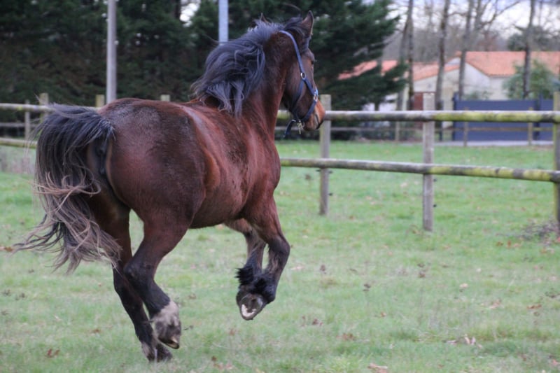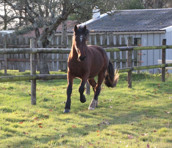 🌟 Nessia de la Gagnerie – 3 ans – OC- Jument de sport 🌟 🔹 Père : Putch des Isles (Selle Français, CSO – classé jusqu’en 150) par Diamant de Semilly 🔹 Mère : Joli Thamesys (Irish Cob PP) Nessia est une jument typée Selle Français, solide et grande, un modèle rare avec du cadre et de la prestance. Elle combine la taille et le potentiel sportif de son père avec la locomotion et la puissance de sa mère. Sa taille adulte est estimée à 1m65. Elle est curieuse, vive et joueuse, avec un vrai plaisir d’apprendre Elle présente : -un grand modèle solide avec arrière-main puissante et poitrail développé -des allures amples et expressives, parfaites pour CSO, complet ou dressage -un mental volontaire, attachant et polyvalent 🌿 Mode de vie Vit toute l’année au pré, facile à gérer Rustique et solide (sans couverture l'hiver) S'entretient bien au foin et avec 2 litres de granulés (malgré sa forte croissance) 🛠 Travail & manipulation -Marchée en longe, manipulable au quotidien -Respectueuse aux soins : brossage, pieds, immobilité -Début de travail à pied et désensibilisation au tapis et à la selle -Nous avons volontairement laissé Nessia grandir tranquillement au pré car elle est née tardivement dans la saison. Nous voulions qu'elle développe un mental sain et la laisser se developper avant de commencer le travail Situé en Loire Atlantique Prix évolutif selon le travail
