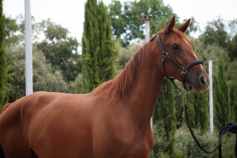 Dreijährige Selle Français-Stute, leuchtend rotschaldar, aus einem hochwertigen Pedigree (Diamondgio LTH Dressvalue x Karamel de Lauture – Linie Gribaldi). Sie war im Alter von zwei Jahren Finalistin bei den Modellen und Gänge-Experiences in Le Mans und zeichnete sich durch ihre Eleganz, ihren Bewegungsfluss und ihr vorbildliches Verhalten aus. Sehr lieb, menschenbezogen, gut im Umgang und in perfektem Gesundheitszustand. Nicht eingeritten, hat aber bereits einen Fohlen geboren. Sie stellt eine ideale Basis sowohl für den Sport als auch für die Zucht dar.
