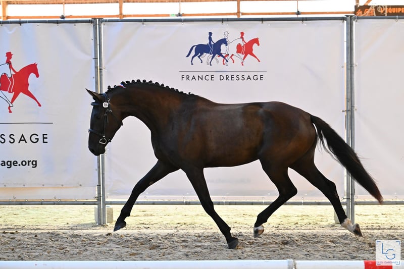 Jument en fin de débourrage chez Catherine Henriquet. Est arrivée 11ème à la finale France Dressage en 2025 où elle a été reconnu "toutes disciplines".