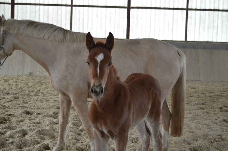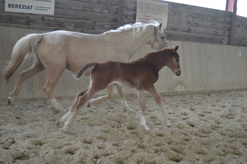 Très gentille et proche de l'homme , à déjà voyagé, très manipuler, une vrai facile Son père est le célèbre Canabis D'albain Vice champion de France des 5 ans Vainqueur de 2 épreuves au championnat du monde des 6 ans à Lanaken ISO 154 Baloubet du rouet/ kannan L'or de Miranola sa mère ( souche dressage par le père mais a sauté aussi jusqu'à 115 et souche de quidam de rivel) Solide, très bon aplomb et du sang , un peu de chic!