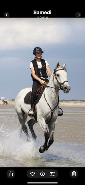 Cheval sensible, avec de la force demandant un cavalier confirmé et encadré. Il est borgne, particularité qui ne gêne pas son travail au quotidien pour un cavalier adapté. ⚠️ Peut cabrer lorsqu’il est inquiet ou mal compris, ce qui nécessite calme, justesse et cohérence dans le travail. 🌟 Points positifs : • Ferrure classique • Bon niveau en dressage, bases acquises • Allures très confortables et régulières • Cheval avec beaucoup de force, mais pas méchant • Jamais été boiteux 👉 Ne convient pas à débutant, amateur seul ou projet loisir familial. 💰 Petit prix, en rapport avec son âge et sa particularité.