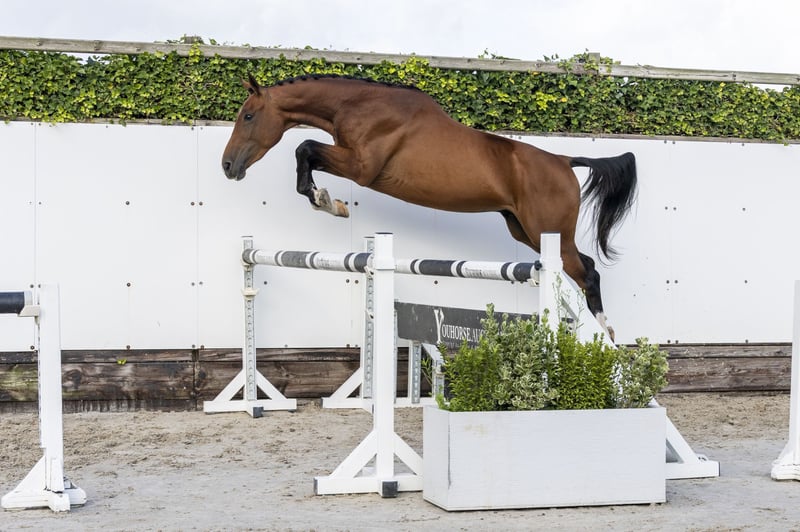 The three-year-old Mercury De Caluyau is still a little shy over fences but already shows a nice way of jumping. A horse with a kind character. Sire El Barone 111 Z was already an extreme showjumping talent from a very young age and he jumped at 1.60m level. His offspring seems very promising. His 9-year-old son Entertainer Z already competes at 1.50m level with Kasper De Boeck. Dam Mandunga LS, a daughter of the 1.50m GP stallion Manzanillo LS, competed international at 1.30m level as an eight-year-old with Vincent Lecolier (FRA). Granddam Take it Easy La Silla (Now or Never M x Ramiro Z) was a 1.60m Grand Prix mare in Mexico. She gave two 1.40m level jumpers, one at 1.45m and three at 1.30–1.35m level.