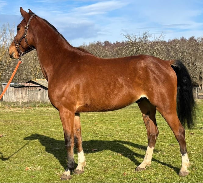 Hongre selle français de 7 ans Petit fils d Heartbreaker Père gagnant 1.35m Mere ayant fait 1.40m Taille 1.60m environ, modèle léger Sort directement de son naisseur Jamais sorti ayant juste fait quelques warmup Prêt à attaquer la saison directement sur 110m Cheval très moderne, dans le sang, regarde rien Génie de la barre À former pour faire 1.30m et plus à terme Et les gagner Visite ok et récente