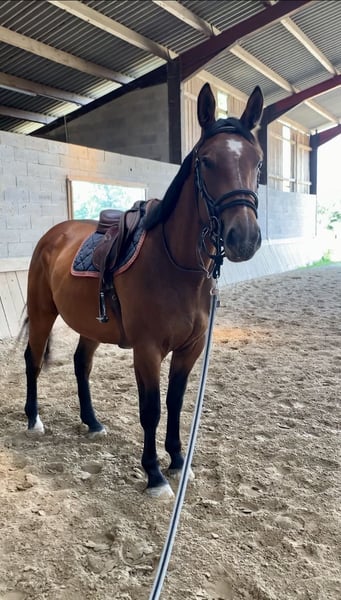 Zu verkaufen: Lieber Freizeit- und Familienwallach, SF, 6 Jahre Kerdu ist ein 6-jähriger brauner Wallach (Jg. 2020) der Rasse Selle Français, ca. 1,65 m gross. Er ist ein sehr braves, ausgeglichenes und zuverlässiges Freizeitpferd mit einem tollen Charakter. Kerdu geht alleine oder in Begleitung problemlos ins Gelände, ruhig und sicher. Er ist tragkräftig und angenehm zu reiten. Er kennt das Springen kleiner Parcours, ist ehrlich, mutig und unkompliziert – springt alles, ohne Stress. Ideal für einen Reiter, der ohne Leistungsdruck Freude haben möchte. Im Alltag ist Kerdu ein absolutes Verlasspferd: – sehr lieb im Umgang – brav bei Pflege und Hufschmied – verladet problemlos ➡️ Sehr gut geeignet als Familienpferd oder Freizeitpartner, auch für entspannte Ausritte und vielseitige Nutzung. 📍 Weitere Informationen, Fotos und Videos gerne auf Anfrage.