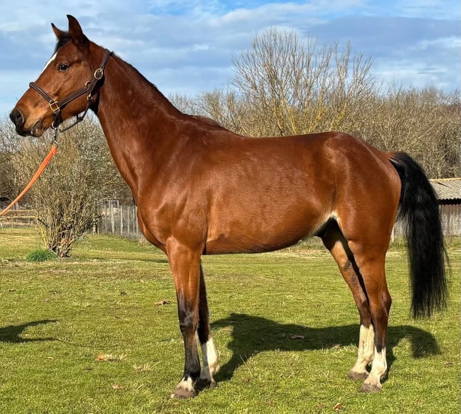Hongre selle français de 7 ans Petit fils d Heartbreaker Père gagnant 1.35m Mere ayant fait 1.40m Taille 1.60m environ, modèle léger Sort directement de son naisseur Jamais sorti ayant juste fait quelques warmup Prêt à attaquer la saison directement sur 110m Cheval très moderne, dans le sang, regarde rien Génie de la barre À former pour faire 1.30m et plus à terme Et les gagner Visite ok et récente Visible à 30 min au sud de bordeaux ( 33730 préchac)