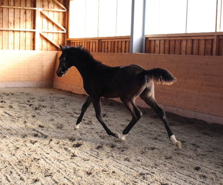 Babarello ShA ist ein sehr bewegungsstarker, typvoller (brauner) Shagya Araber Jährlingshengst mit drei tollen Grundgangarten. Er ist sehr menschenbezogen. Babarello ShA wurde vom ZSAA bei der Fohlenmusterung prämiert und mit zwei Sternen ausgezeichnet! Seine Mutter "Babarella ShA" ist Verbandsprämienstute beim ZSAA und hat ihre Stutenleistungsprüfung mit einer Gesamtnote von 7,22 gemeistert. Der Vater von Babarello ist der gekörte und hengstleistungsgeprüfte "Daru ShA". Wir möchten Babarello ShA vorrangig für die Zucht verkaufen. Er könnte noch ein Jahr zur weiteren Aufzucht bei uns stehen bleiben. Er ist CA und SCID- frei (getestet). www.shagya-araber-hofstetter.de