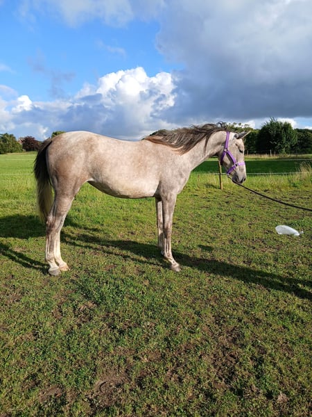 For sale is a beautiful Shagya Arabian mare, born in 2023. She presents herself as a chestnut roan and currently stands at 153 cm. This talented mare is ready to reach new heights with you. She is well-socialized, very confident, and embodies all the advantages of her breed. She has grown up in a herd with her family. She is regularly dewormed, vaccinated, and has been presented to the farrier. Her training is age-appropriate. Ideal for riders looking for a versatile partner who excels in both sport and leisure. If you are interested or have any further questions, please feel free to contact me!