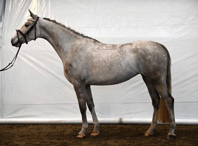 We are selling on behalf of a client a 5-year-old Shagya Arabian mare, currently about 152 cm at the withers, directly from the breeder. The mare has only recently been started under saddle and is responsive to aids in all three basic gaits. She is well-behaved under the rider and in handling, but due to her training level, she is not suitable for absolute beginners. In addition to her three very good basic gaits, she possesses outstanding jumping talent, has a natural brilliant technique, and shows great ambition when free jumping. She is also ideal as a transition horse for young riders with ambitions in show jumping and eventing. Her mother, the elite mare Roxana (Occident x Hadban), was a ribbon collector (L-level show jumping, A-level dressage, and VA-eventing) and has been awarded "Arabian of the Year" multiple times. The father is the elite stallion Bahrain from Ludwigsburg, successful in tournament sports up to M-level show jumping. Due to her pedigree, she is also highly interesting for breeding! The mare is well-behaved for the farrier and loading, and is currently barefoot.