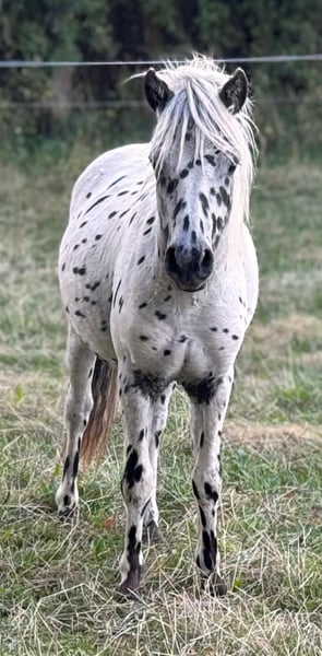 For sale is a wonderful German Partbred Shetland pony stallion. He was born in May 2024. This handsome boy will reach a height of approximately 113 cm. He is a roan tiger-spotted with a mixed genotype Ee/aa, which means he can produce any base color. Additionally, he is a purebred PATN gene carrier, meaning he will always pass on the tiger-spotted gene. Father: Enorm von El Dorado Mother: v Elite/LH Flamenco A great and well-developed young stallion with a good type. El Descarado moves freely with a lot of push from the hindquarters. Descarado was the winner of the state elite foal championship in Redefin with 87.5 points. He received a score of 10 for his type three times, as well as 9.5/9.0/9.0 for his exterior, and another three scores of 10 for his movement. A very high-quality young stallion that can certainly be raised as a candidate for breeding approval. He would also excel as a driving pony. El Descarado has a rather reserved and sensitive temperament. He is not being sold as a children's pony, as he is still very young. He is familiar with dogs, tractors, trucks, and children. Desci is regularly rounded and dewormed. He is growing up with other young stallions in a herd environment. A gem for tiger-spotted breeding. Sale due to personal reasons. Anyone interested in getting to know this wonderful stallion is welcome to reach out. Price corresponds to quality. Serious inquiries only, please!!