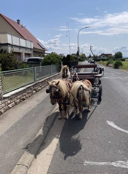 Zum Verkauf stehen zwei liebe Shetty-Jungs (werden im Mai 4 und 5 Jahre alt) mit einem Stockmaß von ca. 90 cm. Beide besitzen einen grünen Pass und wurden bereits erfolgreich vor der Kutsche eingesetzt. Trotz ihres jungen Alters haben sie schon WBO-Turniererfahrung gesammelt und sich dabei absolut brav, gelassen und ohne Aufregung gezeigt – auch beim ersten Turnier. Sie sind in den Disziplinen Kegelfahren, Hindernisfahren und Geländefahren gestartet. Die beiden sind ein eingespieltes Gespann und wurden sowohl einspännig als auch zweispännig sowie im Tandem gefahren. Auch das Schlittenfahren macht sehr viel Spaß. Neue Situationen meistern sie stets ruhig und souverän. Im Umgang sind sie sehr freundlich und unkompliziert, auch Kinder können problemlos mit ihnen umgehen. Sie eignen sich hervorragend als Handpferde, auch mit Stuten. Beide zeigen kaum Hengstmanieren. Im Gelände sind sie sicher unterwegs – auch einspännig kein Problem. Beim Hufschmied sind sie brav. Durch ihr ruhiges Wesen und ihre Nervenstärke sind sie ideal für Anfänger geeignet. Man kann die zwei auch ohne Probleme überall alleine einspannen. Sie bleiben ruhig und geduldig stehen. **Kurz zusammengefasst:** * 4 & 5 Jahre alt (im Mai) * Shetty-Hengste, ca. 90 cm Stockmaß * Grüner Pass * WBO-Turniererfahrung (Kegel-, Hindernis- & Geländefahren) * Einspännig, zweispännig & Tandem gefahren * Schlittenfahren problemlos * Sehr brav, gelassen und nervenstark (auch bei neuen Situationen) * Kinderlieb & unkompliziert im Umgang * Gute Handpferde, auch mit Stuten * Kaum Hengstmanieren * Gelände sicher * Problemlos beim Hufschmied * Anfängergeeignet * keine Rehe oder Ähnliches * sind E-Zaun sicher Verkauf ausschließlich als Gespann. Preis für beide. Bei Interesse oder für weitere Informationen gerne melden.