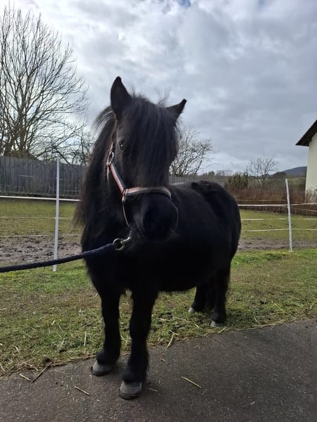 Hortensia von der Brandhoeve ist eine sehr typvolle 1. Prämie Stute. V: Kees v. Reijensbroeck, Rappe, 103 cm, (1. Prämie) M: Rose-Riette v. d. Brandhoeve, Rappe, 99 cm (2007 Tageschamp Ostbrabant) MV: Beauty of Transy Kr.pref. (beste NL-Stute) Für die Zucht sehr interessant durch die beste Abstammung (Transy-Marswood-Linie), Hatte mehrere Fohlen in NL. War Jugendchampion im großen Ma0 und allgemein Jugendchampion. Für 2026 nicht gedeckt. Sie ist rangniedrig. Weil ich aus gesundheitlichen Gründen keine Ponys mehr ausbilden kann, wird sie als roh nur in vernünftige Züchterhände abgegeben.