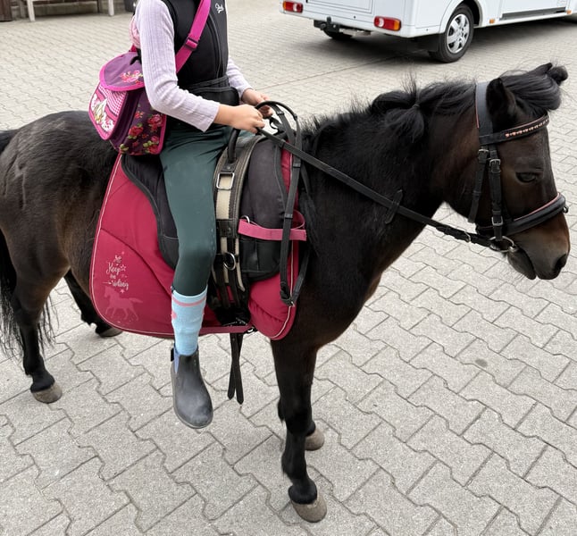 Lea ist ein super liebes Pony. Sie kann geführt oder alleine von Kindern geritten werden. Geländesicher, nicht bösartig. Die Kinder können sie alleine führen, putzen, betütteln, bodenarbeit, reiten, etc Sie kann nur Stundenweise auf die Wiese, da sie sonst Rehe anfällig ist. Sie steht bei uns in einer Ponyherde im Offenstall. Beim Fressverhalten ist sie ranghoch