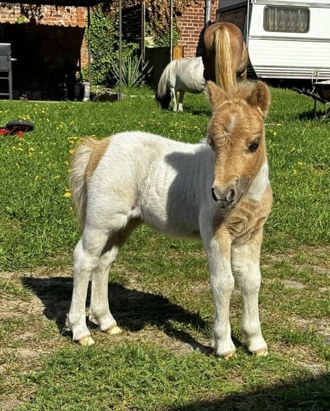 **Ad for sale: Shetland Pony mare** For sale is an enchanting Shetland Pony mare, born in 2023. This little pinto is not only a real eye-catcher, but also ideally suited for show purposes. She impresses with her friendly character and excellent pedigree. Ideal for lovers of this robust and versatile breed. If you are interested, we look forward to hearing from you!
