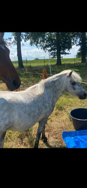 **Sales Advertisement: Shetland Pony Mare** For sale is a charming Shetland Pony mare, born in 2020. She presents herself as a beautiful apple-grey with a height of 110 cm. Our mare comes from an excellent breeding and is characterized by her friendly nature and curiosity. She is well-socialized and has a loving demeanor with people and other horses. Ideal for families, children, or as a loyal companion for pony enthusiasts. She is ready to embark on new adventures and looks forward to a new home where she will receive plenty of love and attention. If you are interested or have any further questions, please feel free to contact us!