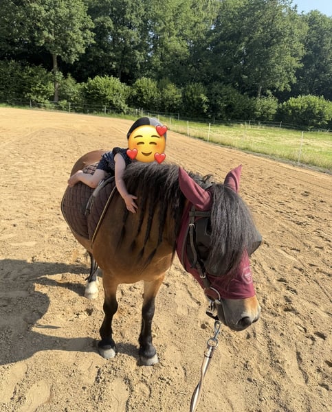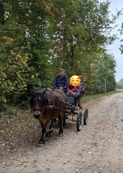 Hallo, schweren Herzens habe ich mich dazu entschieden meine 8 jährige Pony Stute zu verkaufen . Sie ist 1,20m groß und ist geritten und gefahren. Auf ihr sind unteranderem meine beiden Kinder (2 und 4 Jahre ) im Schritt und Trab an der Longe geritten. Und kleine Erwachsene sind sie auch auf dem Platz und im Gelände geritten. Gelände findet sie super und ist absolut Gelände sicher. Wenn sie irgendwas gruselig findet, bleibt sie eher stehen bevor sie durch geht. Auf dem Platz ist sie eher nicht so motiviert, außer es stehen Sprünge da und sie darf darüber. Vor der Kutsche läuft sie auch super und entspannt, egal ob durch den Wald oder durchs Dorf. Bei uns war sie hauptsächlich vor der Kutsche. Bei uns stand sie in einer reinen Stuten Herde, aber auch in einer gemischten Herde. Sie braucht etwas länger um sich an neue Pferde / Ponys zu gewöhnen und ist am Anfang zickig. Auch Menschen gegenüber ist sie erstmal skeptisch, das legt sich aber wenn sie die Menschen besser kennengelernt hat. Ich wünsche mir für sie ein zu Hause wo sie ausreichend bewegt und gefördert wird, den sie liebt die Arbeit und sie liebt es betüddelt zu werden. Sie war gerade beim Zahnarzt und die Osteopathin war auch gerade erst da. Schmied kommt Anfang November. Der Preis ist verhandelbar, bei einem perfektem neuen zu Hause. Man kann das Pony auch ohne Zubehör kaufen. Preis dann gerne per PN Der Preis beinhaltet ihr komplettes Zubehör. - Kutsche - Geschirr - Hufschuhe - Sattel - Trense - Gurt