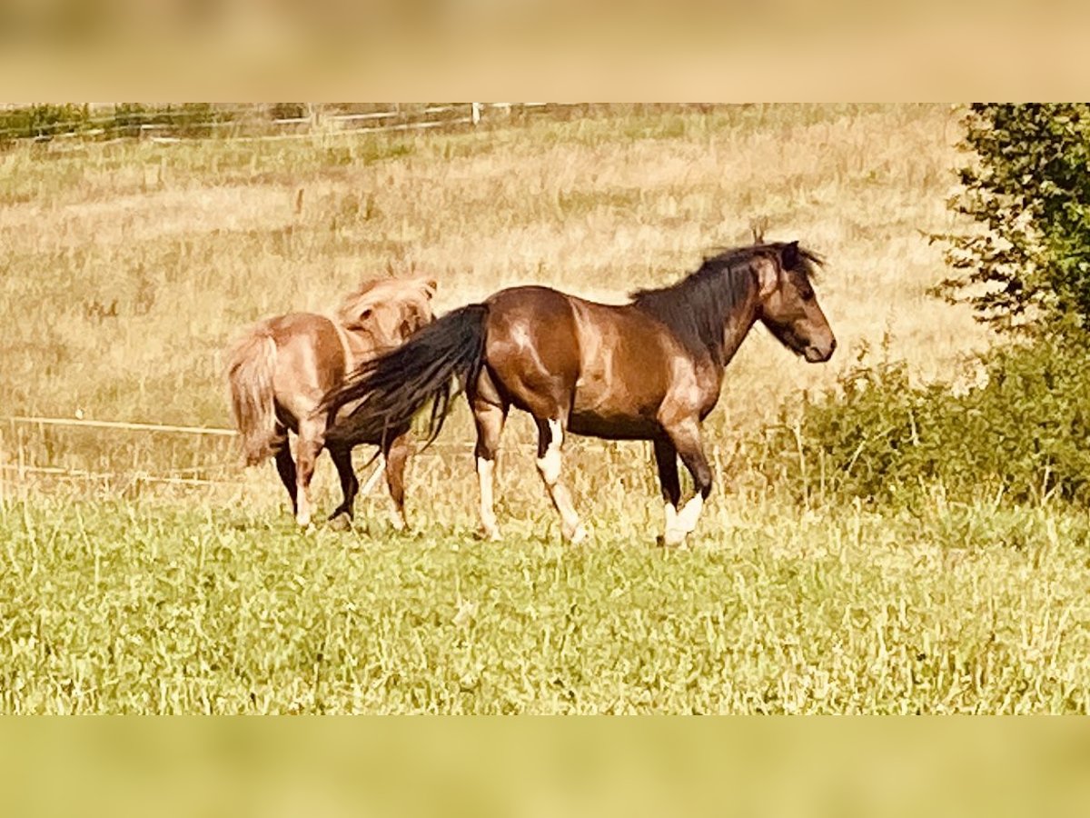 7 Jahre alte Shetty Stute mit rotem Equidenpass zu verkaufen. Sie lebt im Offenstall mit 1 Pony und 2 Großpferden zusammen. Ich hatte sie für mein altes Shetty als Kumpeline gekauft, leider zeichnet sich ab, dass sie sehr gerne arbeitet und bei mir absolut unterfordert ist. Sie ist kein reines Kinderpony, da sie bei Überforderung oder Unsicherheit gerne rammelig wird. Unter Aufsicht wird sie von Kindern geputzt und geritten. Reiten allerdings nur geführt. Sie ist auf einem Auge blind was sicherlich manchmal die Unsicherheit verstärkt. Wenn Sie regelmäßig gearbeitet wird, ist sie allerdings sehr brav und willig. Sie hatte beim Vorbesitzer auch schon ein Fohlen und daher bestimmt auch zur Zucht interessant. Sie hat kein Ekzem und keine Hufrehe, war bei mir im Sommer halbtags auf Koppel, da sie sonst ponytypisch zu dick geworden wäre. Standort in Sachsen, genauer Standort per PN. Tausch gegen ein älteres Shetty wäre auch möglich. 5🥕🥕