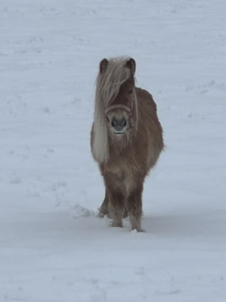Lieve ponyhengst zoekt zijn plek om te stralen