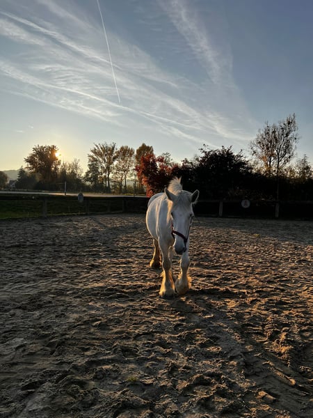 Te koop: indrukwekkende Shire Horse merrie – perfect voor recreatie en plezier Te koop staat een prachtige, elegante Shire Horse merrie, geboren in 2015. Deze imposante grijze dame valt op door haar statige lengte en rustige karakter. Met een stokmaat van 180 cm is ze een echte blikvanger en uitstekend geschikt voor iedereen die op zoek is naar een betrouwbaar en indrukwekkend recreatiepaard. Ze is vriendelijk in de omgang, goed getraind en houdt van lange buitenritten en wandelingen in de natuur. Haar rustige aard maakt haar ook voor minder ervaren ruiters tot een aangename metgezel. Bij interesse of voor meer informatie sta ik graag tot uw beschikking. Bezichtiging is mogelijk op afspraak.