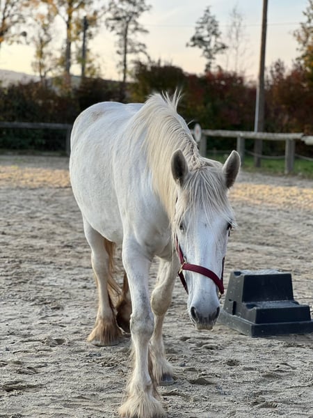 Impressive Shire Horse Mare for Sale – Perfect for Leisure and Pleasure Available is a stunning, elegant Shire Horse mare born in 2015. This majestic grey lady impresses with her impressive stature and calm demeanor. Standing at 180 cm, she is a true eye-catcher and ideal for those seeking a reliable and striking leisure horse. She is friendly in handling, well-trained, and enjoys long rides and walks in nature. Her calm nature also makes her a pleasant companion for less experienced riders. If interested or for further questions, please feel free to contact me. Viewing is possible by appointment.