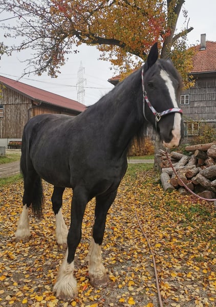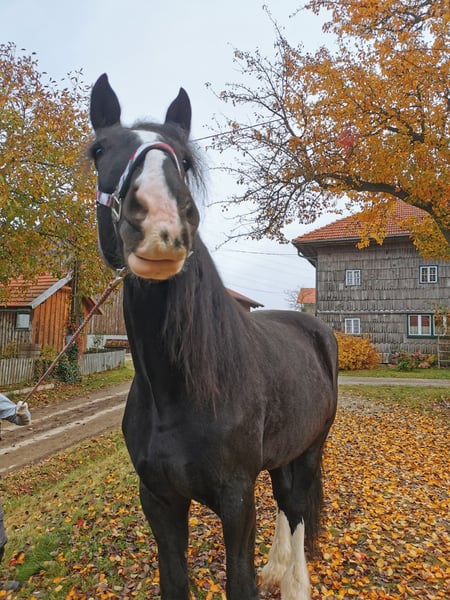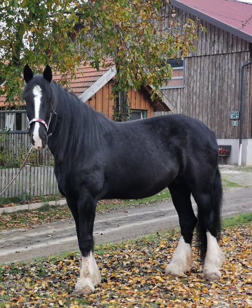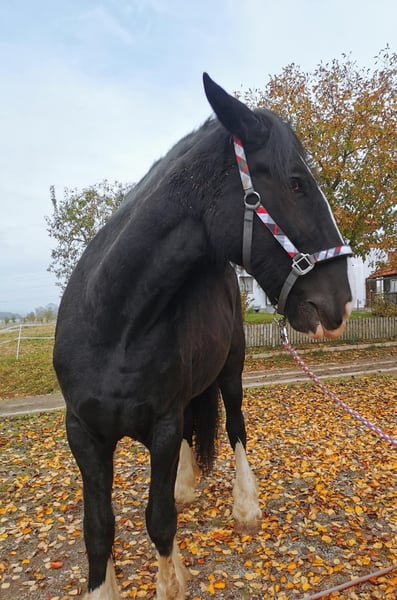 Loving Shire Horse Mare – Ideal for Leisure and Pleasure For sale is a stunning and elegant Shire Horse mare, born in 2015. Standing at an impressive 17.6 hands and with her shiny black coat, she is a real eye-catcher. This calm and friendly mare is perfect for recreational riding and impresses with her gentle nature and composure. She is well-trained, reliable in handling, and suitable for both experienced riders and beginners looking for a special horse. The mare is healthy, regularly vaccinated, and enjoys cuddling in her free time. If you are interested or require further information, please feel free to contact me. A personal meeting is always possible.