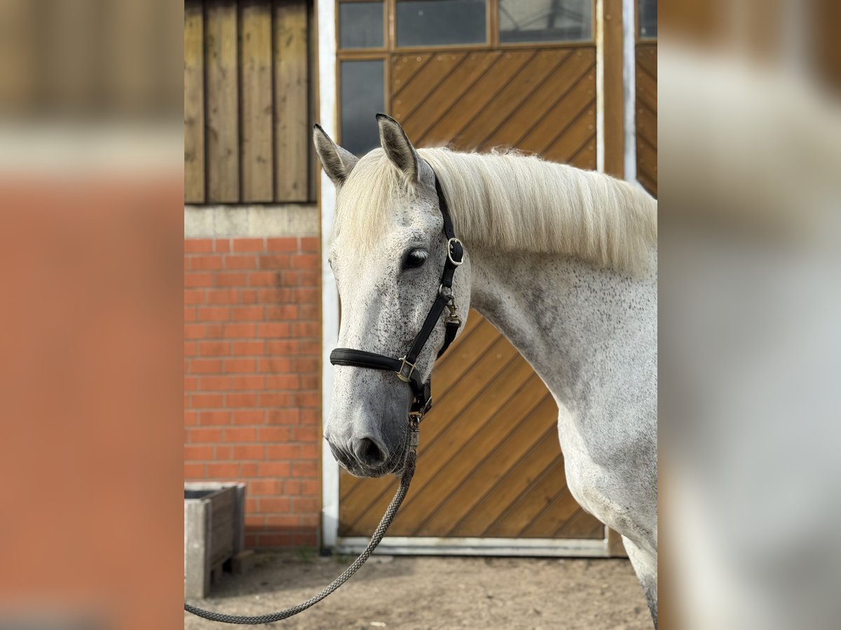 Verkaufe wunderschöne Shire Horse x Vollblut Stute – Ein echter Hingucker! Diese imposante Stute, geboren im Jahr 2012, begeistert durch ihre beeindruckende Größe und ihr edles Erscheinungsbild. Dazu kommt ein absolut toller Charakter, so dass sie im Umgang ein absoluter Schatz ist. Mit einem Stockmaß von 188 cm ist sie ein wahrer Blickfang. Das Pferd ist ein Apfelschimmel, was ihr ein besonders elegantes und anmutiges Aussehen verleiht. Sie ist erfahren im Bereich Jagd, Schaubilder und zeigt sich in der Gruppe zuverlässig und ausgeglichen. Sie ist absolut zuverlässig im Gelände, lässt sich aber auch in der Halle oder auf dem Platz gut reiten. Sowohl die Dressurarbeit als auch Sprünge machen ihr viel Spaß. Durch ihre Ausdrucksstarken Bewegungen und dem bequemen Gangwerk ist sie angenehm zu reiten. Trotz der Größe und Rasse hat sie viel Temperament, so dass das Vollblut immer mal durchscheint. Sie steht mit Stuten, Wallachen oder gemischten Herden. Diese außergewöhnliche Stute bietet eine tolle Gelegenheit für Liebhaber großer und charakterstarker Pferde. Bei Interesse stehe ich gerne für weitere Informationen und eine Besichtigung zur Verfügung.