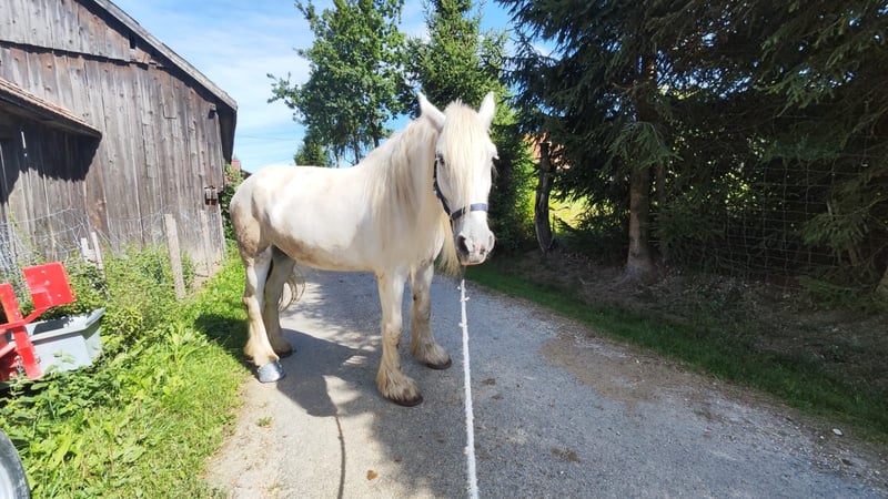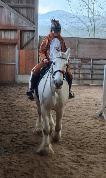 Verkaufe wie im Märchen eine bezaubernde Schimmel Shire Horse Stute !! Diese elegante Schimmel-Stute wurde im Jahr 2010 geboren und beeindruckt durch ihr tolles Erscheinnungsbild. Sie hat ein freundliches aber vorsichtiges Wesen. Fremden gegenüber ist sie sehr skeptisch. Man muss sich ihr Vertrauen erarbeiten. DU musst es ihr Wert sein, dass sie dich akzeptiert. Wichtig ist, dass du ihr Sicherheit gibt. Alles was neu oder anders ist, wird angeprustet. Da wird sie beim Reiten auch ziemlich schnell, wenn sie sich unsicher oder unwohl fühlt. Dann heisst es ruhig bleiben und sie spüren lassen, dass alles ok ist. Mit einem Stockmaß von 176 cm gehört sie zu den Mittelgrossen Shire Horses. Durch ihre Breitere "alte" barokke Form wirkt sie wuchtiger und würde sich eventuelle auch zum Kutschen fahren eignen. Sie ist gut ausgebildet, benötigt aber trotzem einen erfahrenen Reiter. Sie kennt Boxenhaltung sowie auch Offenstallhaltung. Anhänger fahren ist kein Thema für sie. Der Hufschmied ist voll akzeptiert so wie auch der Tierarzt. Als Zuchtstute war sie eine super tolle Mama. Sie braucht viel Zuwendung und einen freundlichen Menschen. Bei Interesse freuen wir uns auf Ihre Kontaktaufnahme!