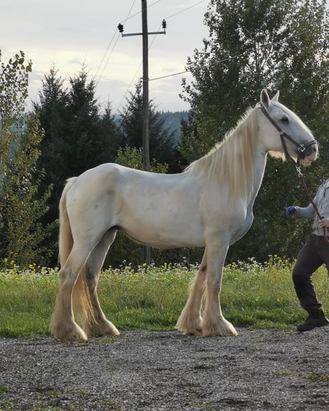 ✨ Shire Horse Stute – perfekt für Freizeit und Genuss ✨ Zum Verkauf steht eine schneeweiße Shire Horse Stute, sofern Sie sich nicht wieder mal im Dreck gewurzelt hat, geboren im Jahr 2009. Mit einem Stockmaß von 167 cm gehört sie eher zu den kleineren Shire Horses. Im Umgang zeigt sie sich freundlich , vorsichtig und aufmerksam, braucht jedoch Zeit, um Vertrauen zu fassen. Sie ist mitunter etwas nervös, reagiert sensibel auf Veränderungen und fühlt sich am wohlsten, wenn sie ihre feste Bezugsperson hat, der sie vertraut. Mit einer ruhigen, konsequenten und liebevollen Hand entwickelt sie schnell eine enge Bindung und zeigt dann ihr wahres, herzliches Wesen. In der richtigen Umgebung ist sie ein treues und lernwilliges Pferd, das ihrem Menschen viel Freude bereitet. Sie eignet sich daher besonders für erfahrene Pferdemenschen, die ein sensibles und feinfühliges Shire Horse zu schätzen wissen. Aufgrund ihres Charakters und ihrer Sensibilität wird sie weit unter Wert abgegeben – statt 6.900 € nun 1.900 €. Diese Preisreduktion soll sicherstellen, dass sie in ein Zuhause kommt, wo sie Zeit, Ruhe und Zuneigung bekommt, um Vertrauen aufzubauen und anzukommen. Mit Geduld, Routine und einem festen Platz in einem kleinen, harmonischen Umfeld kann sie zu einer wundervollen Freizeitpartnerin und treuen Begleiterin werden.