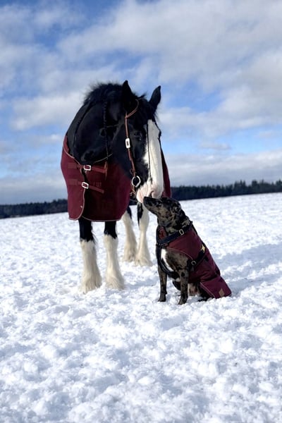 Wenn alles passt würde ich meine 6 jährige Shire Horse Stute abgeben. Kein Notverkauf, wird nur an Bestplatz abgegeben. Cinderella kam 3 jährig direkt vom Züchter aus Nordrhein Westfalen zu mir, ich habe sie dort selbst kennengelernt und abgeholt. Sie musste damals noch einiges lernen aber ist mittlerweile in allen gängigen Situationen brav. Cinderella geht barhuf und hatte noch nie Eisen, beim Schmied ist sie brav. Selbstverständlich regelmäßig geimpft und entwurmt. Gesundheitlich hat sie jedoch eine kleine Einschränkung, sie hatte einen Koppelunfall mit einer Kopfplatzwunde, seitdem besteht bei ihr der Verdacht auf Ataxie. Im Alltag fällt mir dazu jedoch nichts auf, sie stolpert nicht auffällig oder macht irgendwelche Ausfallerscheinungen. Anhänger fahren fällt ihr sehr schwer, sie lässt sich brav verladen, beim fahren setzt sie sich hinten auf die Stange und muss sich sehr anstrengen alles auszugleichen. Unterm Sattel galoppiert sie bisher nur im Gelände, in der Halle oder auf dem Reitplatz klappt es nur mit Unterstützung vom Boden aus, was aber mit etwas Training bestimmt auch funktionieren würde. Sie wurde sehr schonend und langsam ausgebildet, den Ataxieverdacht sollte man dabei immer im Hinterkopf behalten und besonders genau auf mögliche Schmerzanzeichen des Pferdes achten. Ich gehe mit ihr sowohl alleine als auch in der Gruppe ins Gelände, sie kennt Reitplatz und Halle, longieren, Bodenarbeit, Doppellonge, putzen, waschen, föhnen, scheren.. alles was dazu gehört ☺️ Ein Maßsattel (Dressur) und weitere hochwertige Ausrüstung in ihrer Größe wird mit abgegeben. Sie steht in einer XXL Box mit täglichem Weidegang, kennt aber auch Offenstallhaltung. Sie ist nicht für Anfänger geeignet da Sie sich in ungewohnten Situationen/Umgebungen leicht aus der Ruhe bringen lässt und dann auch gerne mal versucht das Weite zu suchen. Wenn man einmal weis worauf man dabei achten muss ist das aber auch händelbar. Sie wird nicht ins Ausland verkauft (nur Deutschland oder Österreich), an keine Schulbetriebe, als reiner Beisteller oder an reine „Zuchtbetriebe“ abgegeben, sie möchte beschäftigt und betütelt werden. Ein mehrmaliges kennenlernen ist erwünscht. Absolut Platz vor Preis