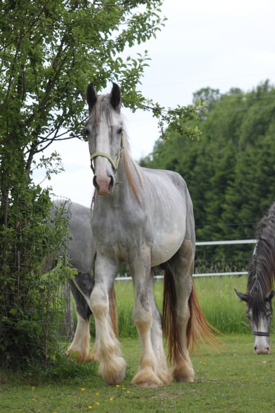 Numero Due was born in spring 2022 and is a very special young Shire Horse gelding. He comes from our own breeding and has been accompanied with a lot of love and care since birth. Both parents are distinguished by their friendly and balanced character. As a result, Numero Due is also an exceptionally people-oriented gelding. He actively seeks closeness, enjoys being petted, and loves walks. He also enjoys learning new things. Numero Due has grown up in a mixed herd with his peers on our spacious pastures, which we believe is particularly important for the health and balance of our horses. For Numero Due, we are now - after long considerations - looking for a special place due to his handicap. Unfortunately, Numero Due is "over at the knee." For those who are not familiar with this term: "Over at the knee" means that the fetlock joint – the area above the hoof – is more lowered than usual. This leads to a softer, sometimes unstable position of the leg. In Numero Due's case, this means that he will not be rideable permanently – even in the long term. This diagnosis is painful, of course, because Numero Due has everything one could wish for from a Shire Horse in every other respect. However, his health conditions do not allow for riding use. That is exactly why we are looking for a special place for him as a companion horse: He loves the company of other horses, is social and very playful in the herd, uncomplicated to handle, and gives his caregivers genuine trust. For people who want to provide a friendly companion for a second or third horse – whether in the pasture or in an open stable – Numero Due is a treasure. Also, people looking for a horse to "love" or to "let their soul dangle" or for extended walks together, without riding being the focus, should feel free to contact us. He can also be taken along as a lead horse, as our veterinarian says that movement is positive for him. He also enjoys all activities. Of course, Numero Due is halter-trained, knows the grooming area, hoof care, and has had some positive experiences with trailer rides. He is well-behaved and uncomplicated with the veterinarian and farrier. He is sound and walks perfectly in the group. His handicap does not limit his desire to move at all. In the herd, he is very playful, so he is not necessarily suitable as a partner for older horses, as this could become stressful at times. We could also imagine him as a companion for a peaceful, not too dominant stallion so that he does not have to be alone. He has also been kept with stallions in the past, and this has always worked perfectly. It is important to emphasize that this is not an urgent sale. We have time for Numero Due until we find the right home for him. A place where he is appreciated for who he is: as a loving, non-rideable companion who touches hearts with his gentle and people-oriented nature. Therefore, we kindly ask dealers to refrain from inquiries. The asking price is well below what a Shire Horse would normally cost – but only if it is ensured that Numero Due will not be ridden. This is a prerequisite for us. Because we want his life to be characterized by care, peace, and companionship – not by expectations that he cannot meet due to health reasons. For Numero Due, place comes before price. We would be very pleased to receive a brief description of the future home. Numero Due currently lives near Bad Füssing. If interested, we are happy to send more information, pictures, and videos and arrange a meeting. We also like to provide insights into our daily life with the horses on our WhatsApp channel. Anyone who can imagine offering Numero Due a loving home as a companion is very welcome to contact us.