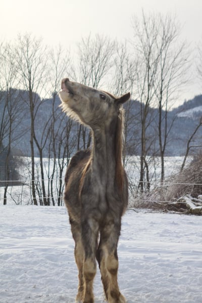 Numero Due, nato nella primavera del 2022, è un giovane stallone di Shire Horse molto speciale. Proveniente dalla nostra stessa selezione, è stato accudito con grande amore e cura fin dalla nascita. Entrambi i genitori si distinguono per il loro carattere amichevole ed equilibrato, e queste qualità si rispecchiano anche in Numero Due. È un stallone estremamente socievole e affettuoso, che cerca attivamente la vicinanza delle persone, adora le coccole e le passeggiate. Inoltre, è curioso, aperto e felice di scoprire cose nuove. È cresciuto in un branco misto sui nostri ampi pascoli, il che lo ha reso socialmente stabile e equilibrato. Purtroppo, a Numero Due è stata diagnosticata una patologia chiamata "passaggio dell'articolazione fetale". Per chi non conoscesse il termine: l'articolazione fetale, ovvero la zona sopra il casco, è più abbassata del normale. Di conseguenza, il suo asse degli arti risulta leggermente più morbido, il che lo rende permanentemente non adatto alla monta. Nonostante questa particolarità, si muove in modo assolutamente fluido nel branco e non mostra alcuna limitazione nella vita quotidiana. Proprio a causa di questa condizione di salute, Numero Due viene venduto a un prezzo molto inferiore rispetto al valore di mercato – invece di 5.900 €, il prezzo attuale è di 2.500 €. Desideriamo trovare per lui una famiglia che apprezzi il suo carattere affettuoso e che possa offrirgli una vita tranquilla e stabile come animale da compagnia o di supporto. Ama la compagnia degli altri cavalli, è socievole, giocoso, facile da gestire e ripone pienta fiducia nelle persone di riferimento. È ideale per chi desidera un secondo o terzo cavallo come amico gentile. È anche perfetto per chi cerca un cavallo da amare, per passeggiate o come partner di lavoro leggero – secondo il veterinario, il movimento è particolarmente benefico per lui. Numero Due è gestibile con il cappuccio, conosce il luogo di pulizia e la cura degli zoccoli, e ha già avuto alcune esperienze positive con il trasporto in trailer. È tranquillo dal veterinario e dal maniscalco, senza zoppie, e si muove senza problemi in gruppo. In branco si mostra giocoso e curioso – per cavalli più anziani potrebbe essere meno adatto come compagno, mentre invece è perfetto per cavalli più giovani o altrettanto attivi. Lo vediamo anche come compagno ideale per un stallone tranquillo e non dominante. È importante sottolineare che non si tratta di una vendita di emergenza. Numero Due può restare con noi finché non troviamo la famiglia giusta. Per noi è fondamentale che venga apprezzato per quello che è – un affettuoso, non montabile, compagno di vita con un grande cuore e un temperamento gentile. Dato che per noi il valore non è prioritario rispetto al benessere dell’animale, gradiremmo ricevere una breve descrizione della futura famiglia. Attualmente, Numero Due vive vicino a Ried im Innkreis. Su richiesta, possiamo inviare ulteriori informazioni, foto o video e organizzare un incontro. Chi desidera accogliere un giovane stallone di Shire Horse, affettuoso e con una storia speciale, troverà in Numero Due un fedele compagno per il cuore.