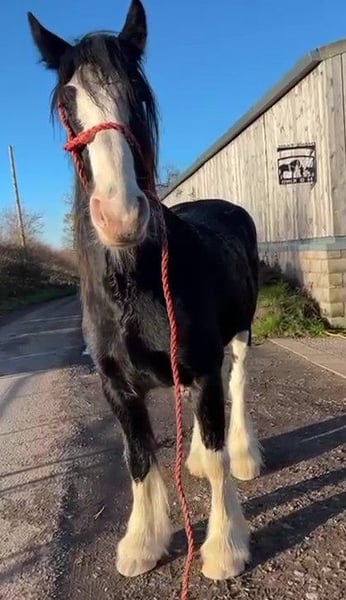 This superb show quality jet black Shire gelding has the most lovely nature. He is very easy, good to wash, load, with his feet etc - very easy - very handsome and very high quality. sheila@shiresandclydesdales.com